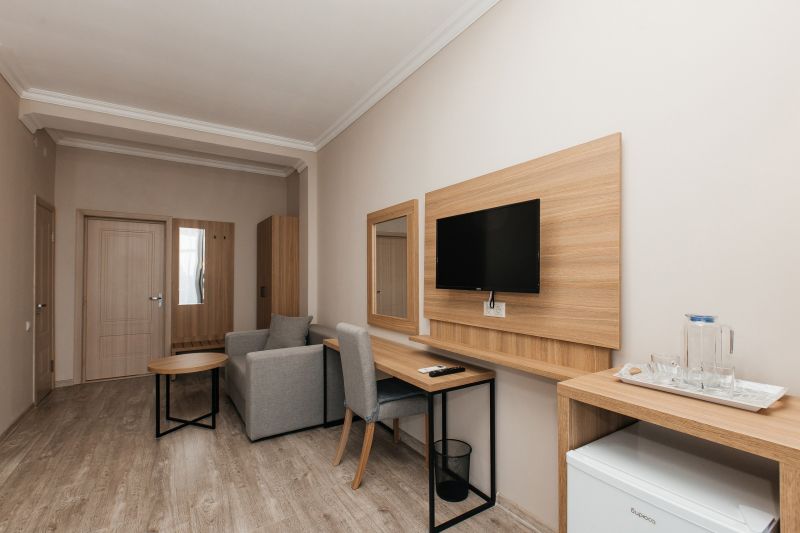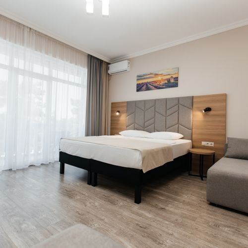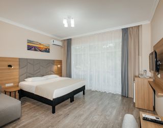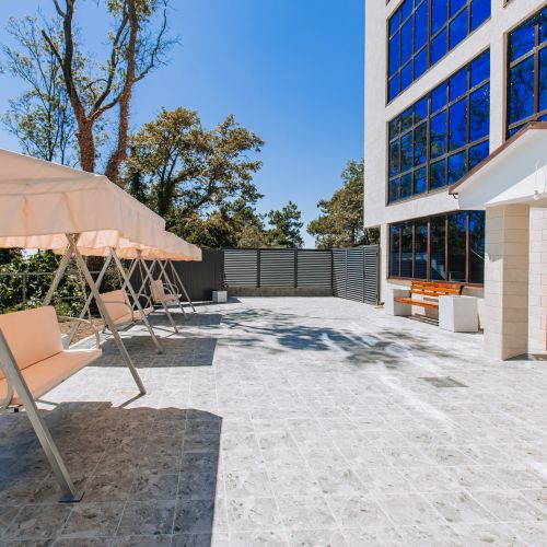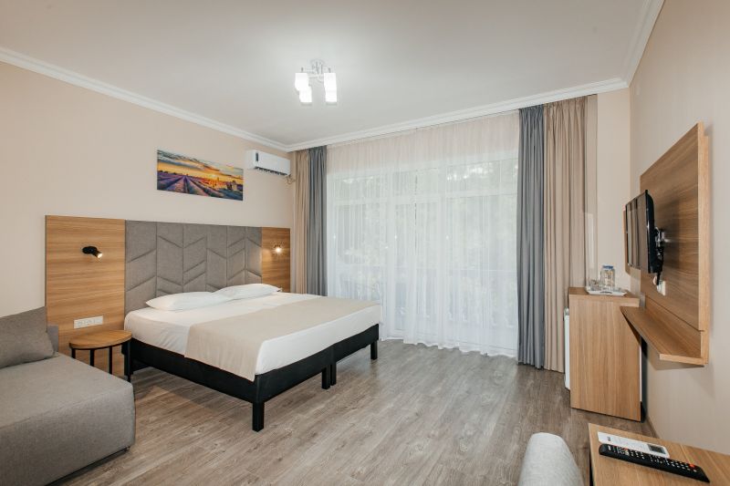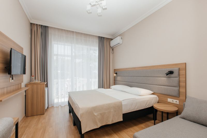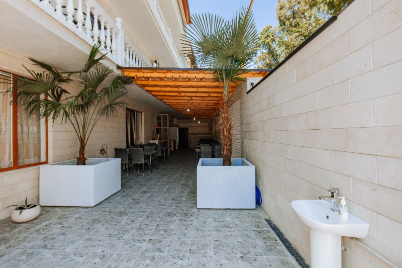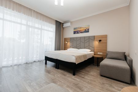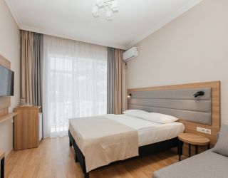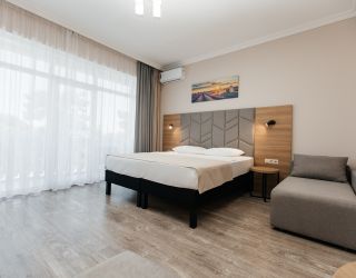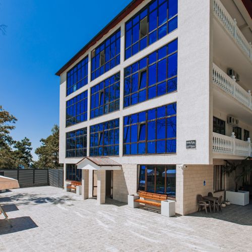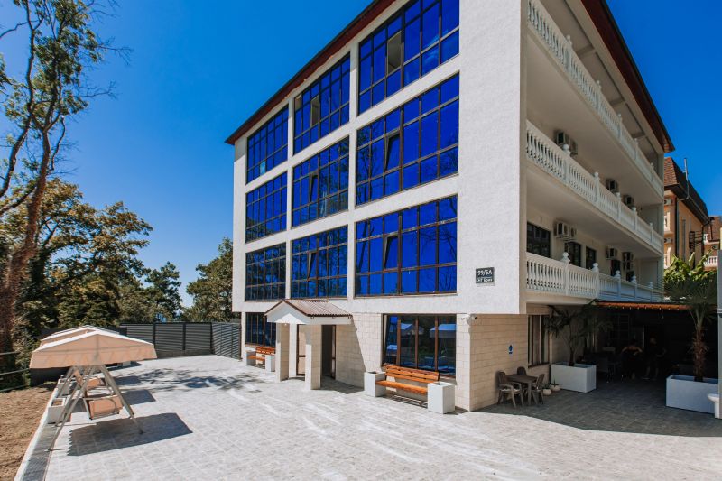 В 2 километрах от гостевого дома – железнодорожная станции, а до аэропорта в Адлере – 37 километров. Четырехэтажный современный корпус гостевого дома (без лифта) разместился на закрытой территории в 500 метрах от моря. В распоряжении гостей – уютные стильные номера с балконами и панорамными окнами, из которых открываются виды на море