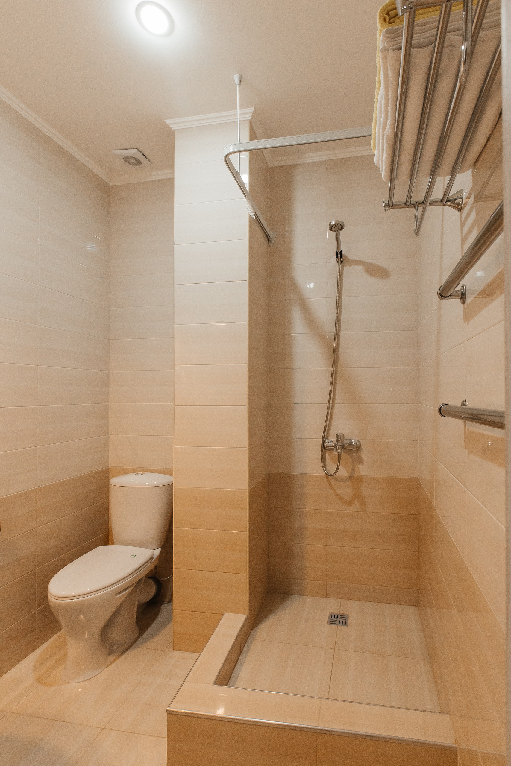 - Санузел: с душем (поддон), фен